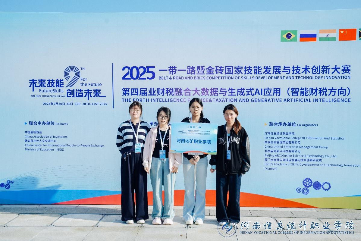 2025年9月19-20日,2025一带一路暨金砖国家技能发展与技术创新大赛“业财税融合大数据与生成式AI应用(智能财税方向)赛项决赛在河南信息统计职业学院成功举办。全国共有84支队伍参加本次大赛,经过激烈角逐,由我们大数据与会计专业苏世娟、李想老师指导的李旦旦、张亚妮、李佳茵、张硕团队在比赛中荣获国家级二等奖,实现我们在该项赛事成绩上的历史新突破。